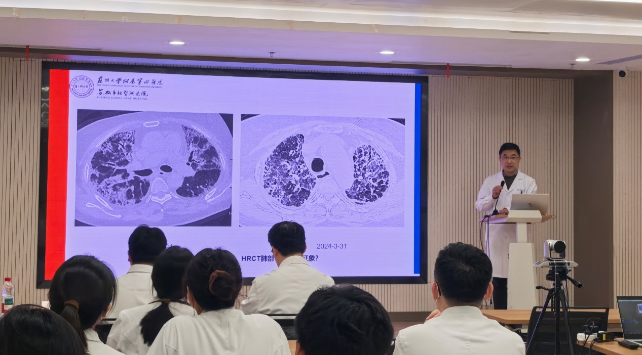 3月7日,苏州大学附属第四医院“青年医师临床技能提升”系列培训(后简称为“青培”)第四场顺利举办。本次授课主题为“胸部高分辨率CT(HRCT)读片培训——第一讲:基础征象识别(Basic Interpretation)”,由苏大附四院放射科张卫国主任授课,本场培训吸引众多青年医师积极参加。苏大附四院副院长郭强,医务处副处长张立峰出席此次培训。