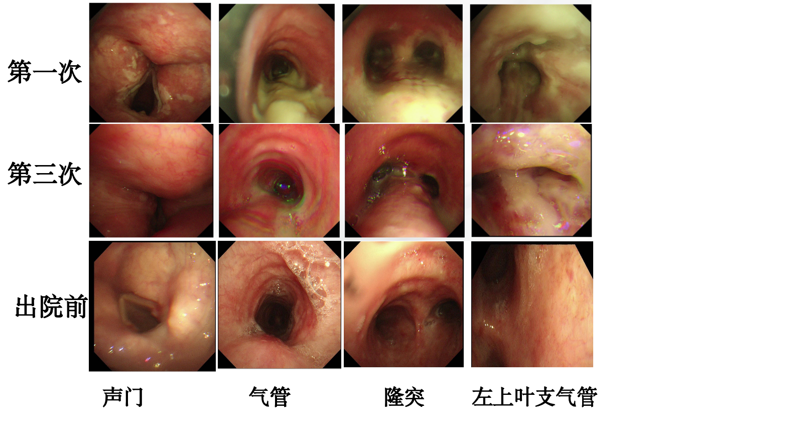 呼吸内镜下治疗在这场治疗战役中发挥了举足轻重的作用。团队凭借精湛的技术,先后四次运用呼吸内镜,精准地将两性霉素喷洒到感染病灶。每次操作都经过严密的规划和细致的准备,医生们在操作过程中全神贯注,凭借丰富的经验和精准的手法,确保药物能够均匀且准确地覆盖在病变部位,直接对真菌进行“打击”,有效遏制了病情的恶化,连续多次的气管镜操作,既是治疗手段,更是动态评估病情的“窗口”。通过每次气管镜下呈现的坏死组织范围、脓苔黏附程度以及有无肉芽增生等情况,实时、动态地调整治疗药物,做到治疗方案的精准优化。同时,团队成员迅速全面地开展了一系列综合治疗措施,多管齐下为患者的康复保驾护航。给予抗病毒,输注白蛋白、丙种球蛋白、血浆支持治疗,辅以止咳、雾化、化痰、降糖、保肝、补钾、高流量氧疗等综合治疗,全方位保障患者的身体机能。