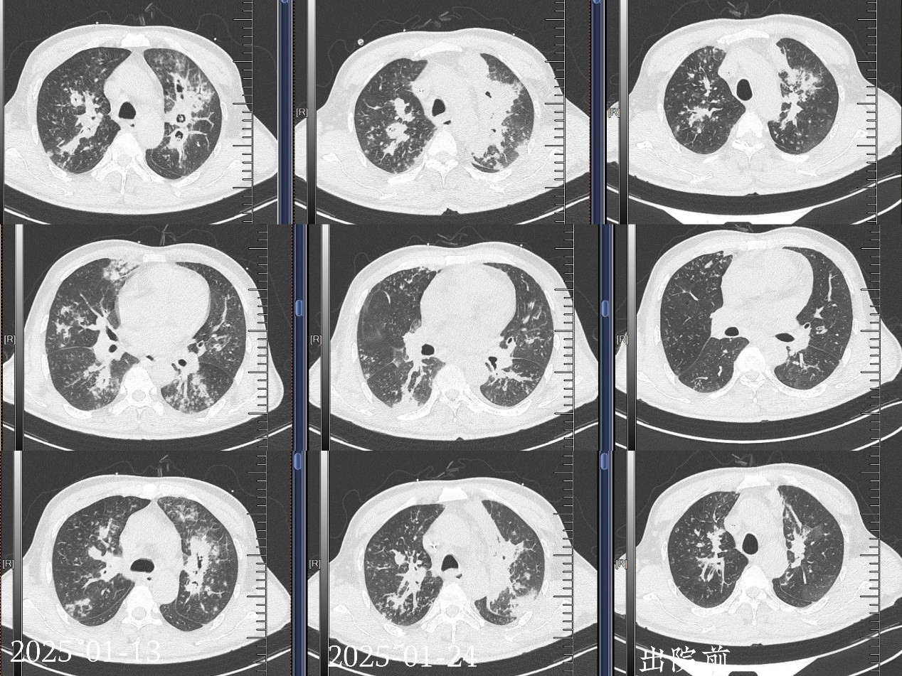 60岁的陈先生,因咳嗽、胸闷一周就诊。看似普通的症状背后,却隐藏着重重危机,患者长期吸烟、饮酒,且患有高血压和2型糖尿病,这些不良生活习惯与基础疾病悄然为病情恶化埋下危险的种子。患者在外院就医时起初诊断为细菌性肺炎,但常规抗感染治疗却让病情急转直下,胸部CT显示双肺斑片状阴影,白细胞计数飙升至19.38×10^9/L,CRP高达282.19mg/L,糖化血红蛋白更是达到13.0%,如此失控的血糖水平让他本就脆弱的免疫系统彻底“瘫痪”。更为棘手的是,这场疾病已不再局限于肺部,牵连至多个系统,肝脏、肾脏等重要脏器的功能也受到不同程度的损害,陈先生的身体状况岌岌可危,逐渐出现呼吸衰竭,一场与死神的赛跑迫在眉睫。