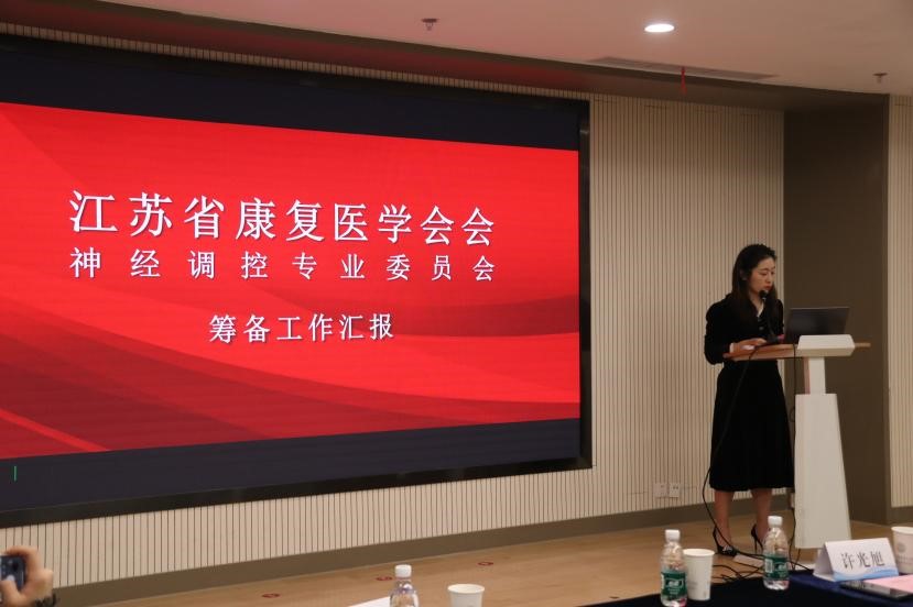 江苏省康复医学会神经调控专业委员会成立仪式在苏州大学附属第四医院举行。来自全省各地的神经康复领域专家、学者以及相关医疗从业人员汇聚一堂,共同见证。本次成立会议由江苏省康复医学会副秘书长李旻瑶主持并宣读医学会总会批复。专委会成立筹备小组负责人苏敏介绍筹备情况。