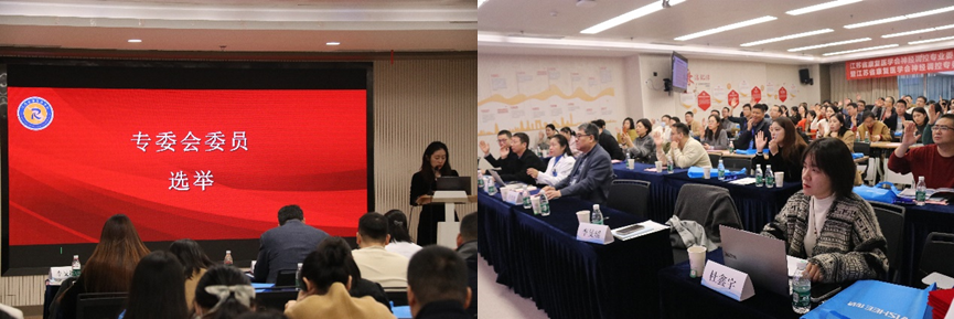 李旻瑶副秘书长宣读选举办法,全体委员代表投票表决通过委员会组成。根据《江苏省康复医学会分支机构管理办法有关规定》,神经调控专业委员会通过选举产生了第一届主任委员苏敏;副主任委员沈滢、宋新建、周敬杰、王正飞;秘书长侯文杰、工作秘书范颖洁、学术秘书任绪艳;确定了组织机构和委员名单。