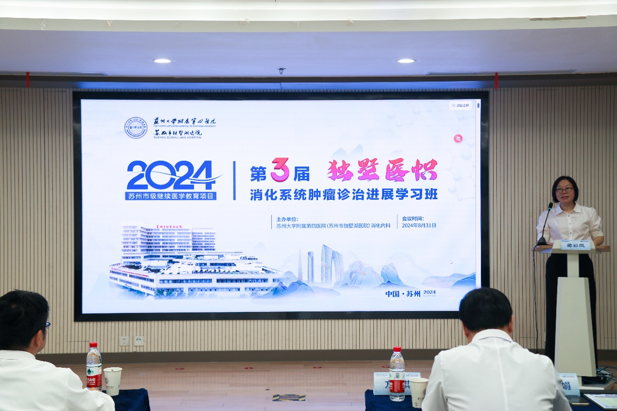 8月31日,由苏州大学附属第四医院消化内科举办的第三届“独墅医帜”消化系统肿瘤诊治进展学习班圆满结束。本次大会以专题报告的形式,梳理诊疗决策思路,分享临床实践经验。多位来自上海、北京和苏州医学界的知名学者和专家,在本次会议分享了消化道肿瘤诊断、治疗的最新进展。苏大附四院院长方琪、科教处处长江淼出席开班仪式。学习班由苏大附四院消化内科蒋彩凤主任主持。