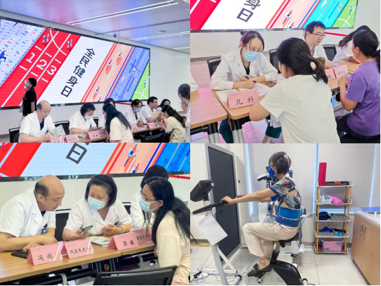 激烈的竞技运动往往带来运动伤痛,网球肘、半月板磨损、踝关节扭伤、韧带撕裂等运动损伤的出现往往猝不及防。现场专家团队针对这些运动损伤耐心地为患者答疑解惑,根据患者的不同运动习惯,结合年龄、性别、体态制定个性化运动处方。康复医学科主任苏敏为在场患者介绍我院专业的心肺运动试验评估,该项检测可以无创对心肺耐力进行评估,制定体适能运动方案,帮助运动人群了解心肺体能状况,降低运动风险,确保患者在进行高负荷运动时的生命安全。