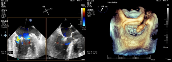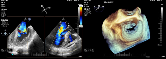在患者全麻状态下经股静脉置管、经食道超声(TEE)引导房间隔穿刺后置入导引鞘管,手术团队将夹合器精准送达二尖瓣反流区。在TEE及X线引导下,手术团队利用二尖瓣夹(Mitraclip)准确捕获二尖瓣叶,试夹闭后经过超声证实夹闭有效,释放成型夹。术后超声评估,二尖瓣口仅见轻微反流,反流情况明显改善,患者各项生理指标正常,Mitraclip手术高质量完成。患者于术后第3天顺利出院,出院前检查患者二尖瓣反流各项参数指标恢复都超出了预期效果。