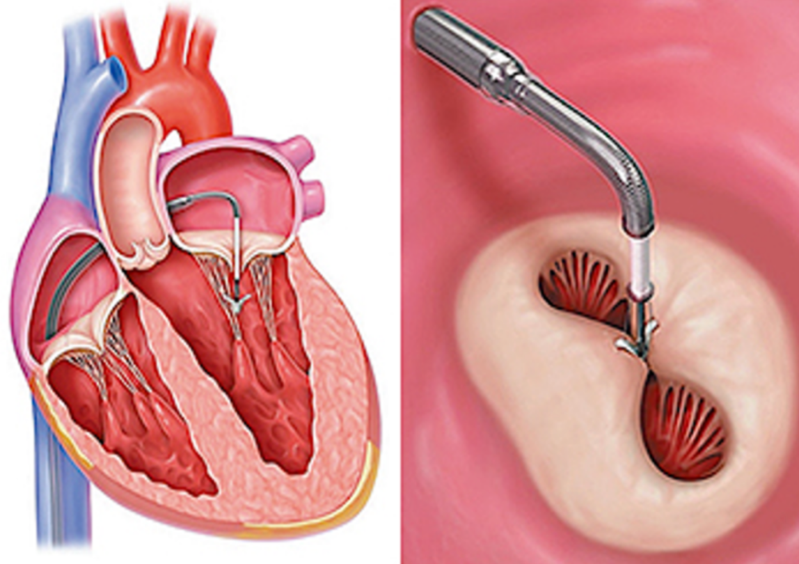 经导管二尖瓣钳夹术使用特制的二尖瓣夹合器,经股静脉进入,穿刺房间隔,进入左心房及左心室,在三维超声及DSA(数字减影血管造影)引导下,使用二尖瓣夹合器夹住二尖瓣前、后叶反流部位,使二尖瓣在收缩期由大的单孔变成小的双孔,从而明显减少二尖瓣反流,阻止心脏扩大,改善心功能。其治疗二尖瓣返流已被证实是一种无需开放式心脏手术的新型、微创、安全的治疗策略。