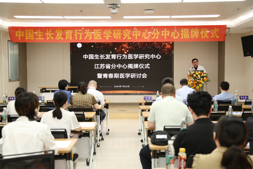 中国生长发育行为医学专业委员会主任委员潘慧教授与中国生长发育行为医学研究中心主任班博教授一同为中国生长发育行为医学研究中心江苏省分中心揭牌,并宣布分中心青春期医学联盟成立。