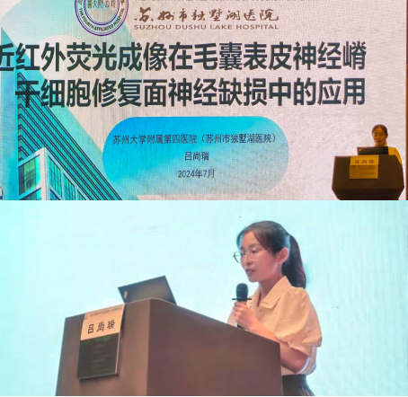 在耳科会场,吕尚瑞医生介绍了《近红外荧光成像在毛囊表皮神经嵴干细胞修复面神经缺损中的应用》研究。这项研究提出了干细胞联合脱细胞神经支架修复面神经缺损的可行性,并通过近红外Ⅱ荧光成像技术,深入了解移植干细胞的命运与转归,为加快干细胞疗法的临床应用提供了有力支持。