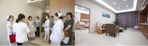 另一组孕妈妈集体参观了我院LDR一体化产房。LDR一体化产房是集待产、分娩、产后康复三位一体的家庭化产房,以产妇为中心,提供全方位的医疗服务。在LDR一体化产房中,除了剖腹产,产妇无需再往返于病房和产房之间,极大地提升了分娩的舒适度和体验。