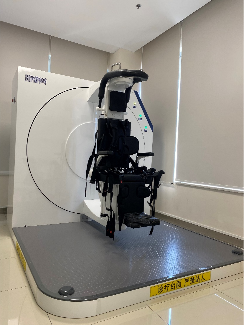 在进行眩晕症诊断治疗时,患者被固定在座椅上,座椅的运动由计算机数字化准确控制。诊断和复位时患者可由座椅带动全身整体转动,避免了传统手法对患者的颈部及腰部造成刺激,有效弥补人工手法复位的缺陷。相比于传统方式,患者体位变动更充分,甚至可以实现一些传统手法复位无法完成的复位方法,使得治疗效果更精准、安全、有效。