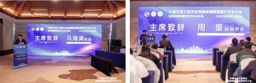 马海涛教授及周景副秘书长为精准医疗大会外科分会暨姑苏胸部肿瘤论坛外科分会致辞
