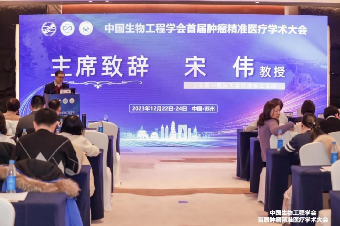 新冬已至,万物封藏,一年好景谱新章。为了更好推动我国肿瘤精准医疗的发展及产业应用,促进各领域专家学者的交流与合作,首届肿瘤精准医疗学术大会暨姑苏胸部肿瘤论坛于近日在苏州召开。会议由中国生物工程学会主办,苏州大学附属独墅湖医院、苏州市抗癌协会、中国生物工程学会生物医药大数据专业委员会和中国生物工程学会计算生物学与生物信息学专业委员会联合承办。出席本次会议的领导嘉宾有:中国生物工程学会副秘书长陈禹保教授,江苏省医学会胸外科分会主任委员薛涛教授,苏州市卫生健康委员会副主任沈洁,苏州工业园区卫生健康委员会主任冯彬,苏州大学附属独墅湖医院院长方琪教授。苏州大学附属独墅湖医院胸心外科马海涛教授及肿瘤内科陶敏教授共同担任大会主席并主持大会开幕式。