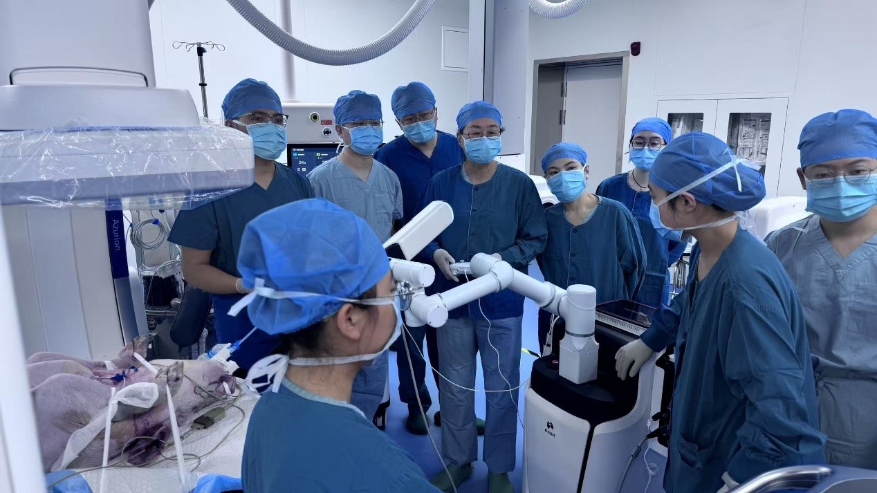 近期,苏州大学附属第四医院呼吸内科在蒋军红主任的引领下,借助支气管镜导航机器人系统,以动物模拟手术形式,成功开展了两项极具创新性的探索性研究——机器人辅助经支气管冷冻消融术与 TTS 支架植入术。在手术过程中,该系统充分发挥 AI 三维重建、智能路径规划以及多模态信息融合等前沿技术优势,为手术提供全方位、高精度的支持。此次创新性实践,将机器人辅助技术深度融入肺部微创介入治疗领域,为患有复杂气道疾病及早期肺癌的患者开辟了全新的治疗路径,带来了战胜疾病的新希望。