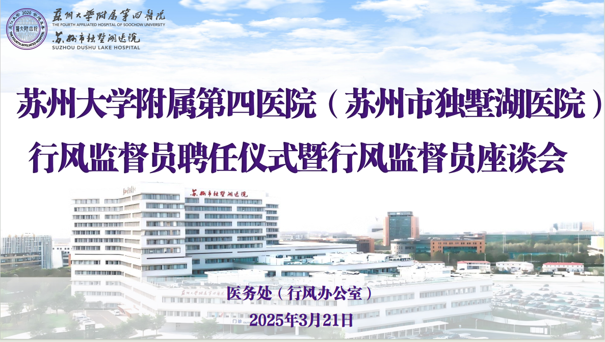为进一步加强医院行风建设,完善医院行风工作社会监督机制,3月21日下午,苏州大学附属第四医院举办2025年度行风监督员聘任仪式暨行风监督座谈会。来自法律、医疗科技、公安、社区服务、教育、金融等十余个行业领域的行风监督员齐聚苏大附四院,共筑监督同心圆,赋能行风建设新生态,共同为医院行风建设工作提质增效献言献策。医务处(行风办公室)、门急诊办公室、后勤保障部、纪检监察办公室职能科室负责人出席会议。
