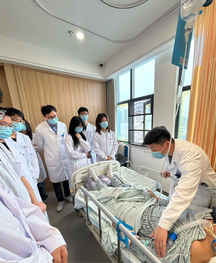康复医学科苏敏主任代表科室向同学们表示热烈欢迎,并详细介绍了科室目前正在开展的康复技术和项目。鲍捷老师向同学们介绍了此次见习流程,四个学习环节分别由周栋梁、吴建兵、陈瑶、骆振周老师带教。各带教老师用生动形象的比喻将复杂的医学理论拆解,让抽象的知识变得鲜活易懂。同学们积极投身于见习中,深刻地体会到康复医学不仅是一门学科,更需要医生具备高度的人文关怀精神。