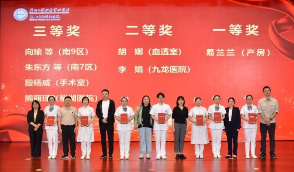 现场,为获得“金穗护理系列奖项”、“青年护士双语读书报告会”、“护理用品创新大赛”荣誉的职工进行颁奖。其中,妇产科赵鑫护士作为获奖代表发表感言,勉励同仁携手共进,以专业与温情续写护理事业新篇章。