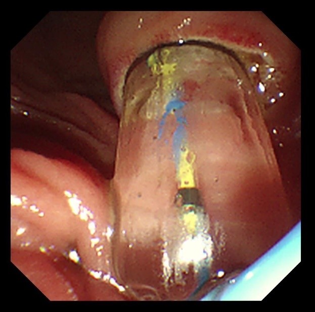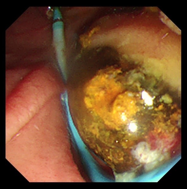 苏大附四院ERCP团队在手术中看到陈大爷的胆总管在结石的影响下已经宽达13mm,结石大小11*10mm,将十二指肠乳头切开并扩张后用取石球囊把结石取出,置入胆管支架使胆汁充分引流,顺利解除了胆道梗阻。