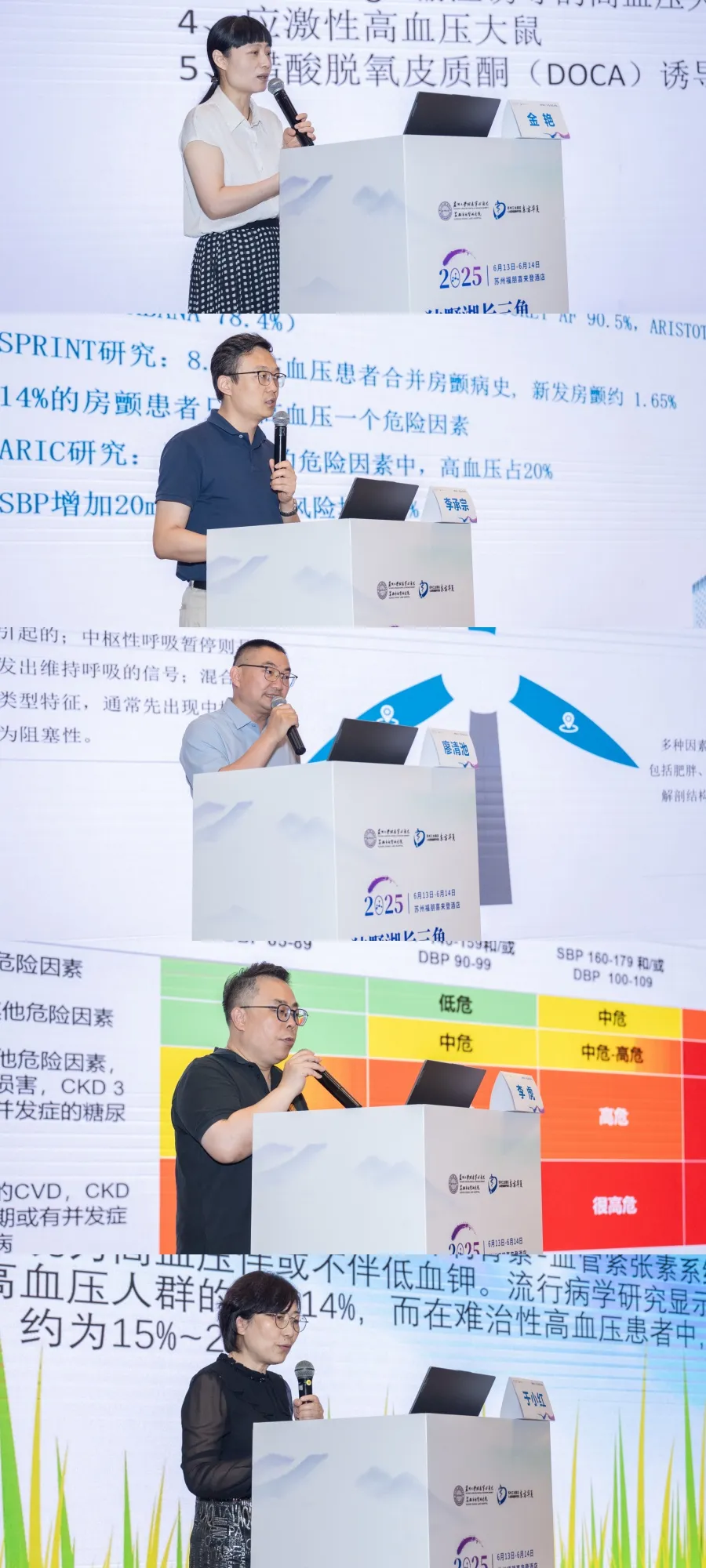 下午,聚焦高血压诊疗的关键热点问题与临床实践路径。无锡市第二人民医院金艳主任医师带来了“肠道菌群与高血压”的前沿研究,揭示了肠道菌群对血压的影响机制。徐州医科大学附属医院李承宗主任医师聚焦“高血压合并房颤的筛查和诊治”,提供了实用的临床解决方案。苏北人民医院廖清池教授以“睡眠呼吸暂停与高血压”为题,深入剖析了睡眠呼吸暂停与高血压之间的密切关联及其管理要点。南京大学医学院附属鼓楼医院李虎主任医师重点解读了《基层高血压临床实践诊疗路径》,为规范化诊疗提供指引。南通大学附属医院于小红主任医师对《内分泌性高血压筛查专家共识2025》进行了解读。