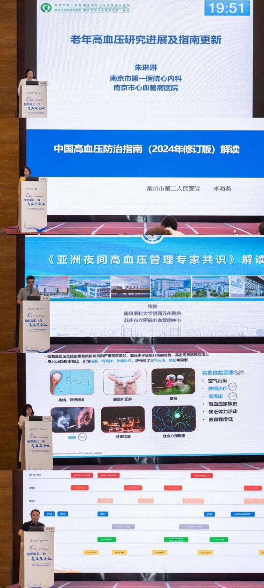 南京市第一医院朱琳琳主任医师带来了“老年高血压研究进展及指南更新”,为老年患者管理指明方向。常州市第二人民医院李海燕主任医师权威解读了《2024年中国高血压防治指南》的核心内容。苏州市立医院张俊主任医师为大家带来了关于《2025亚洲夜间高血压管理专家共识》的解读。苏州大学附属第一医院徐明珠主任医师探讨了“抗肿瘤治疗与高血压的研究进展”这一交叉领域的热点问题。苏州大学附属第四医院赵良平主任医师带来“新指南指导下,高血压达标策略”主题汇报,为大家解析了新指南对于高血压治疗的新要求与新策略。