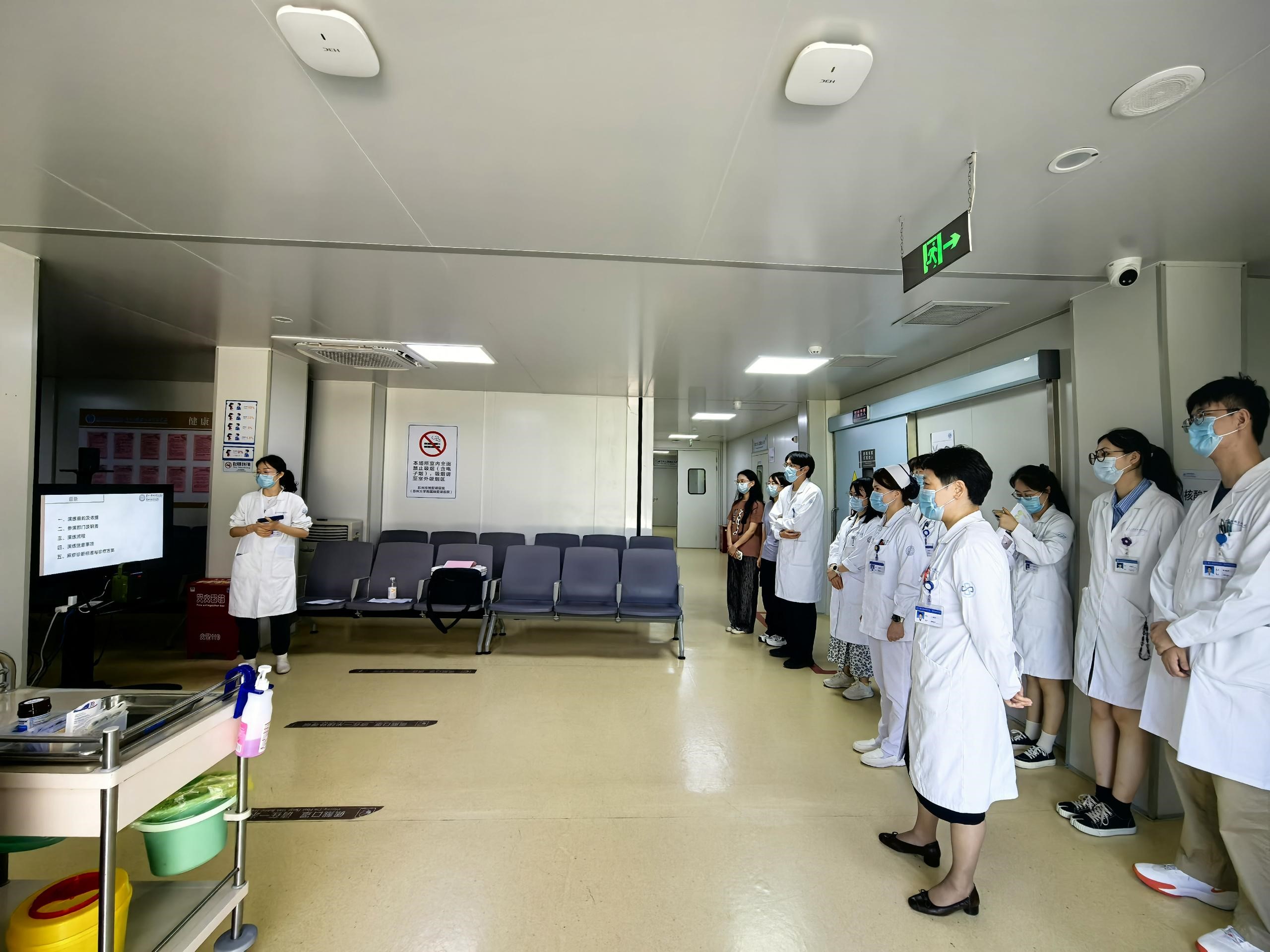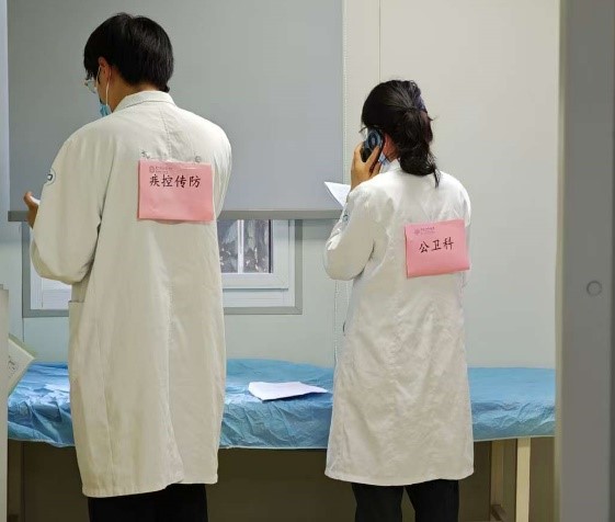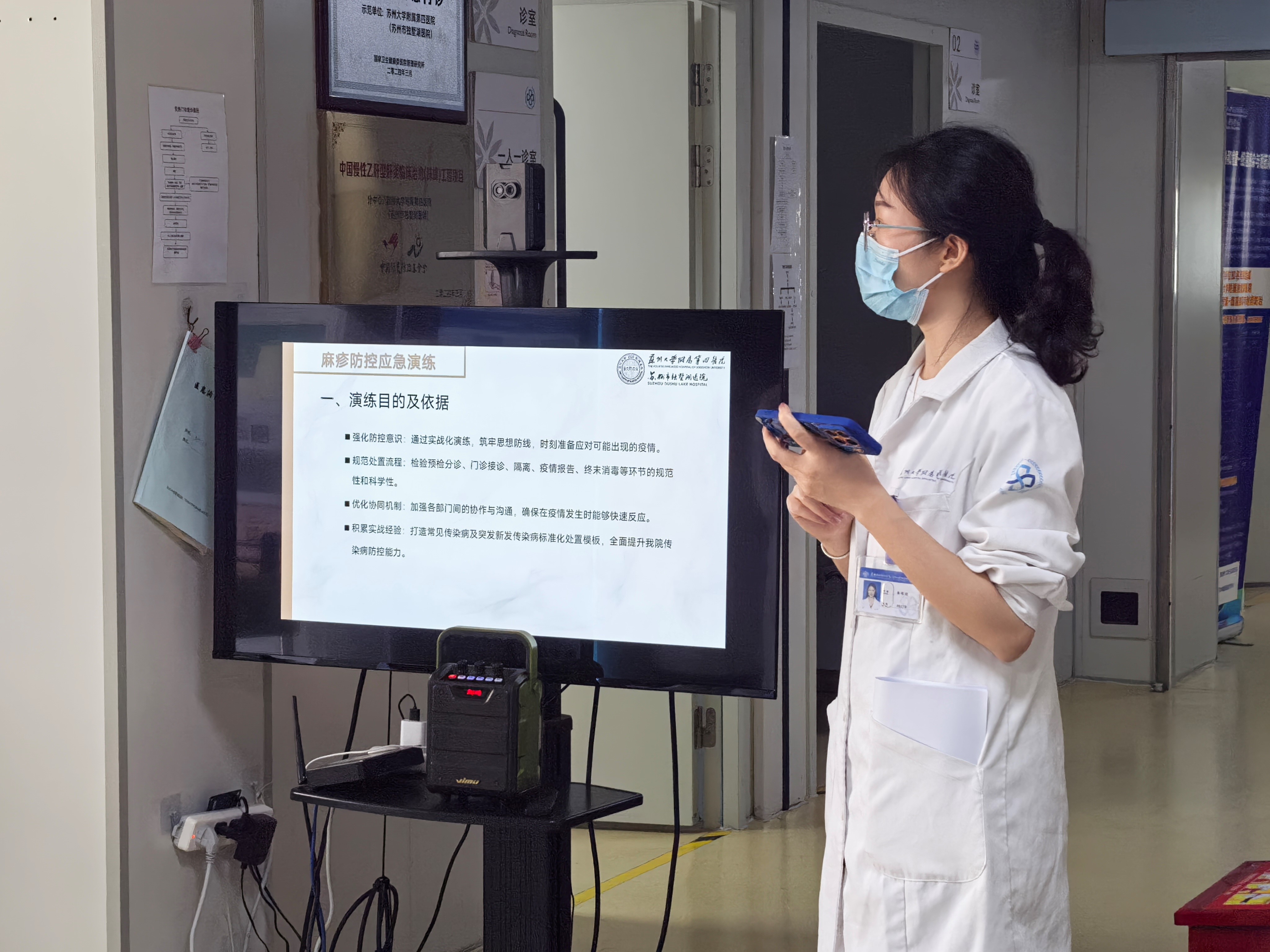 为加强麻疹等呼吸道传染病防控应急处置能力,提升各科工作人员对麻疹疫情的识别和应对能力,理顺麻疹疫情防控机制,加强各部门分工与合作,及时规范处置相关疫情。近日,我院开展麻疹应急处置演练,公共卫生科、医务处、感染管理处、门急诊办公室、急诊医学科、后勤保障部等相关人员现场参与。演练分为桌面预演和实战演练两部分。