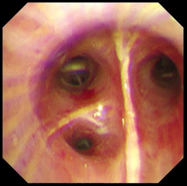 首次支气管镜清除手术:解决大块异物阻塞。因患者颈部有损伤,未行硬镜置入,在麻醉手术科的密切配合下,为患者经口插入8.5号气管插管,接呼吸机辅助通气,建立稳定的呼吸通道。随后,气管镜顺利进镜,发现气管及左主支气管内充满泥沙样分泌物、黄脓痰及块状异物。随后,实行精准操作:用吸引器清除泥沙样物质及黄脓痰;使用活检钳分次取出左下叶大块石状异物,并配合取石网篮清理;刷检带出细小碎石,并进行多部位生理盐水灌洗,最大限度清除可见异物。