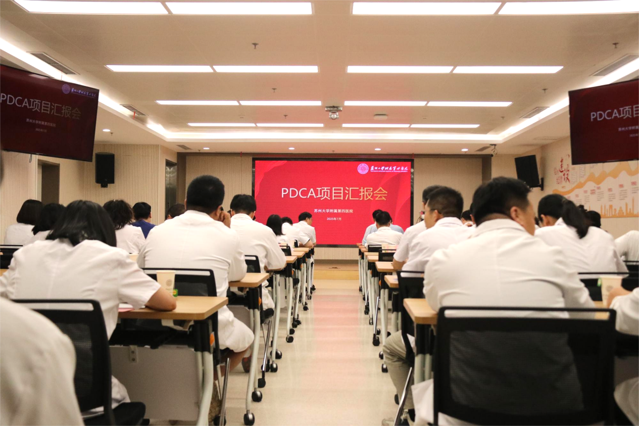 为进一步提升医院精细化管理水平,推动医院“三甲”建设进程,迎接三级医院“国考”,解读好、落实好国家十大医疗质量安全改进目标,7月10日下午,苏州大学附属第四医院举办2025年度第一期PDCA闭环管理项目汇报决赛。医院领导班子出席本次PDCA项目评比,各科室代表参会。汇报评比工作由院长方琪主持。