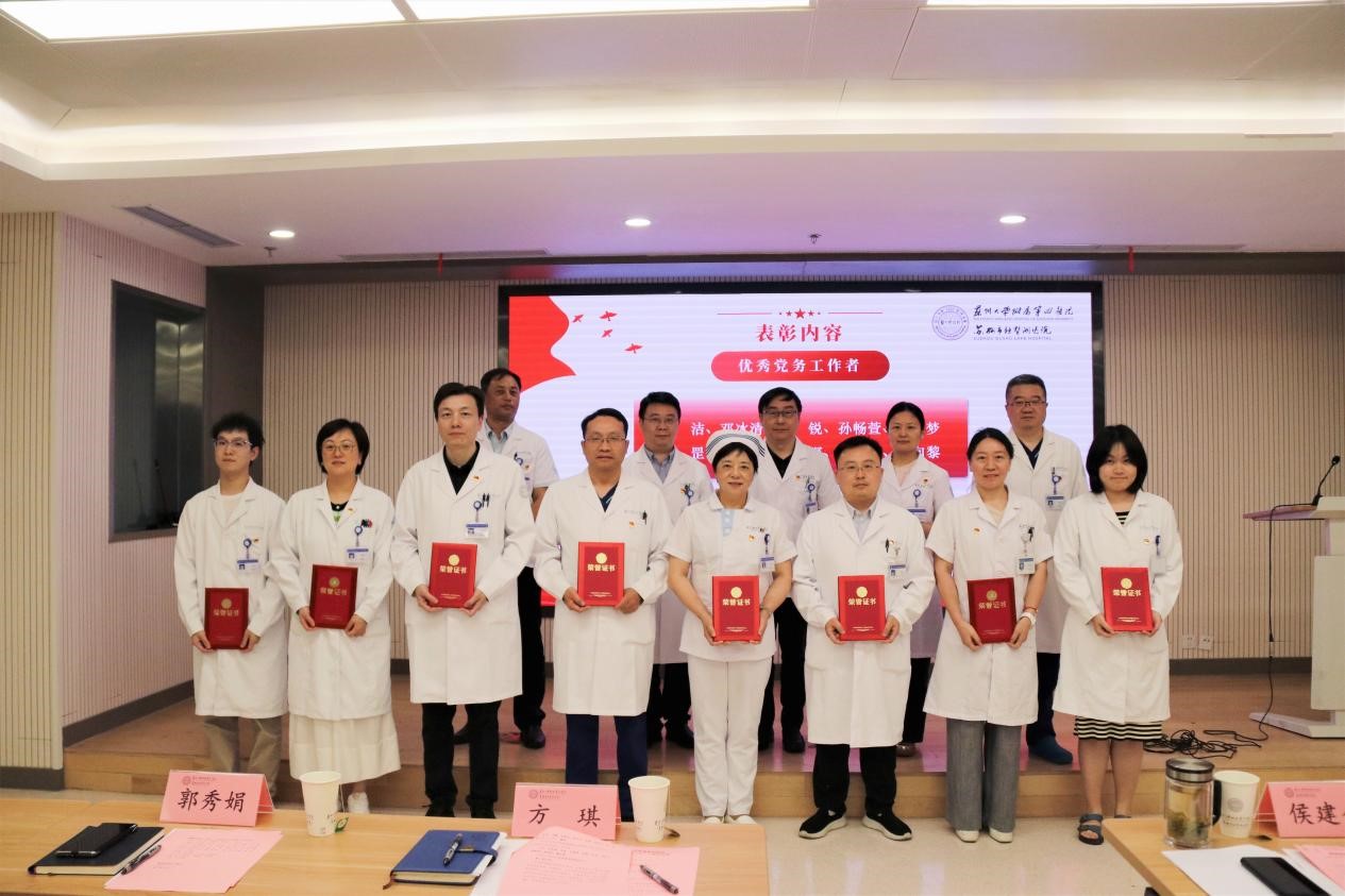 医院党委副书记、院长方琪宣读医院党委表彰优秀共产党员(31名)、优秀党务工作者(10名)和先进基层党组织(1个)的决定。院领导为受表彰的优秀个人和先进集体颁发奖牌和荣誉证书。