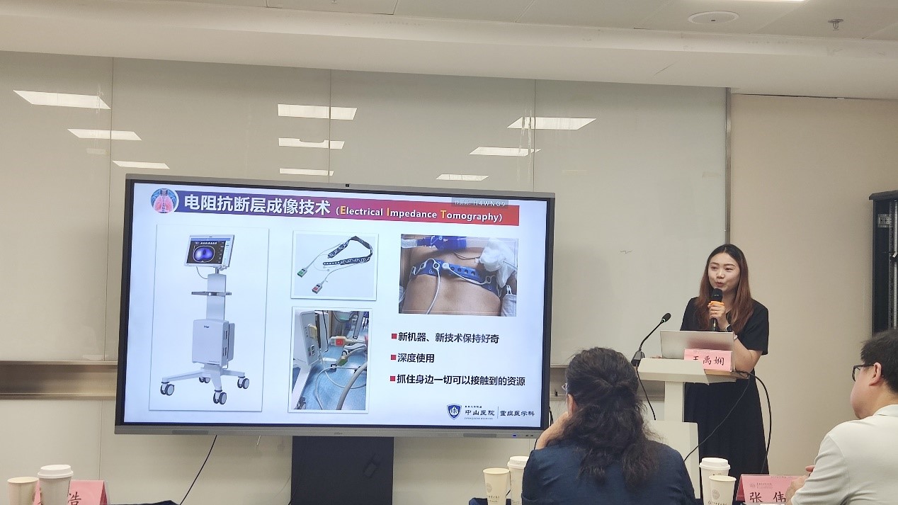 呼吸治疗师王禹娴为大家带来干货满满的学术分享。她以电阻抗断层成像技术(EIT)为钥匙,拆解了从病床旁发现科研问题的思维路径,展现了新技术如何重塑呼吸治疗的精准边界。此外,以自身科研经历为例,她生动阐释了“从临床痛点出发”的科研思维。其中“科研起步三原则”引发交流会的强烈共鸣:第一,数据积累如拼图,要建立个人数据库,包括EIT文件、Excel记录表甚至手绘草图;第二,文献阅读带问题,针对“俯卧位通气最佳时长”的困惑,系统梳理近5年文献,发现现有研究存在空白,进而设计了针对性研究,成果发表于《American Journal of Respiratory and Critical Care Medicine》;第三,小切口深挖掘,她从“屏气时间对EIT血流监测的影响”这一细节出发,撰写的文章也被《American Journal of Respiratory and Critical Care Medicine》接收,成为科研入门的“敲门砖”。