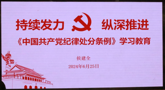 为深入学习贯彻习近平总书记关于加强党的纪律建设重要论述,践行党纪学习教育重要讲话和重要指示精神,加强党的纪律建设,推进党纪学习教育走深走实,6月25日,苏大附四院党委书记侯建全围绕《中国共产党纪律处分条例》讲授专题党课,全体院领导、各业务科室正副主任、护士长、党政职能科室正副主任、各支部书记参加学习。