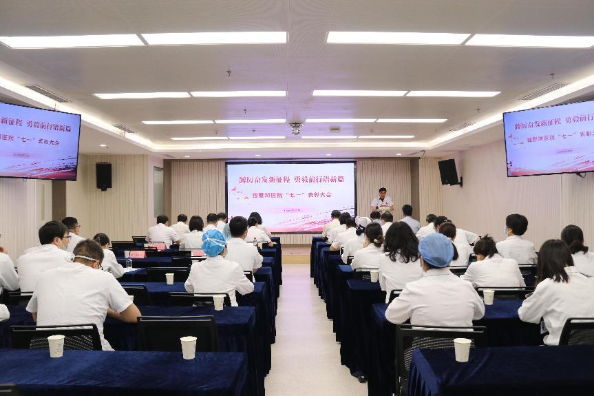 独墅湖医院领导班子、党务部门相关人员、各支部委员以及受表彰的集体和个人参加本次大会。会议由党委副书记、院长方琪主持。会议在庄严肃穆的国歌声中拉开帷幕。