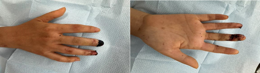近日,一位年轻的女性金融行业从业者焦急万分的来到苏大附四院急诊科,一阵突如其来的大风猛地关上了沉重的铁门,致使其右手中指远节被夹,造成完全性脱套离断伤。远节指骨外露,脱套的软组织挫烂严重,指神经呈“鼠尾状”撕脱。患者承受着剧痛,同时面临手指功能丧失的风险,却依然表达了极其强烈的再植愿望,并将信任托付给我院。