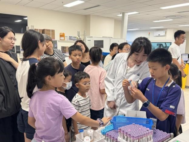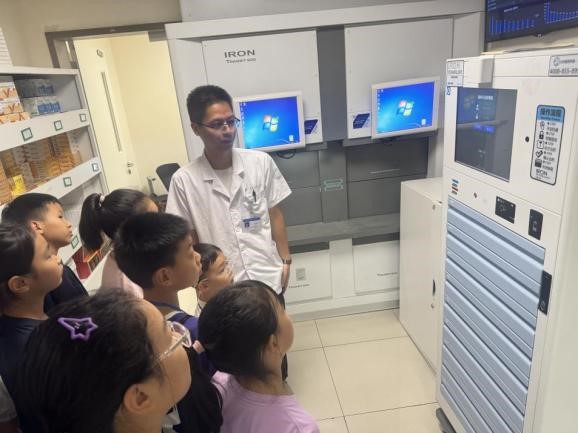 讲座与香包制作结束后,孩子们先后走进药学部、放射科、临床检测中心以及眼科教育基地参观。在各个科室,医护人员为孩子们热情地讲解着科室的工作内容、先进设备的用途以及相关医疗知识。药房里,孩子们认识了解药品的分类、储存和发放过程;放射科里,孩子们好奇地观察着大型影像设备,听医生讲解如何通过这些设备为患者诊断病情;临检中心内,孩子们近距离观察了各类样本的检测过程,对疾病的诊断有了更直观的认识;眼科教育基地体验趣味互动,孩子们学习到了保护眼睛的重要知识以及常见眼科疾病的防治方法。