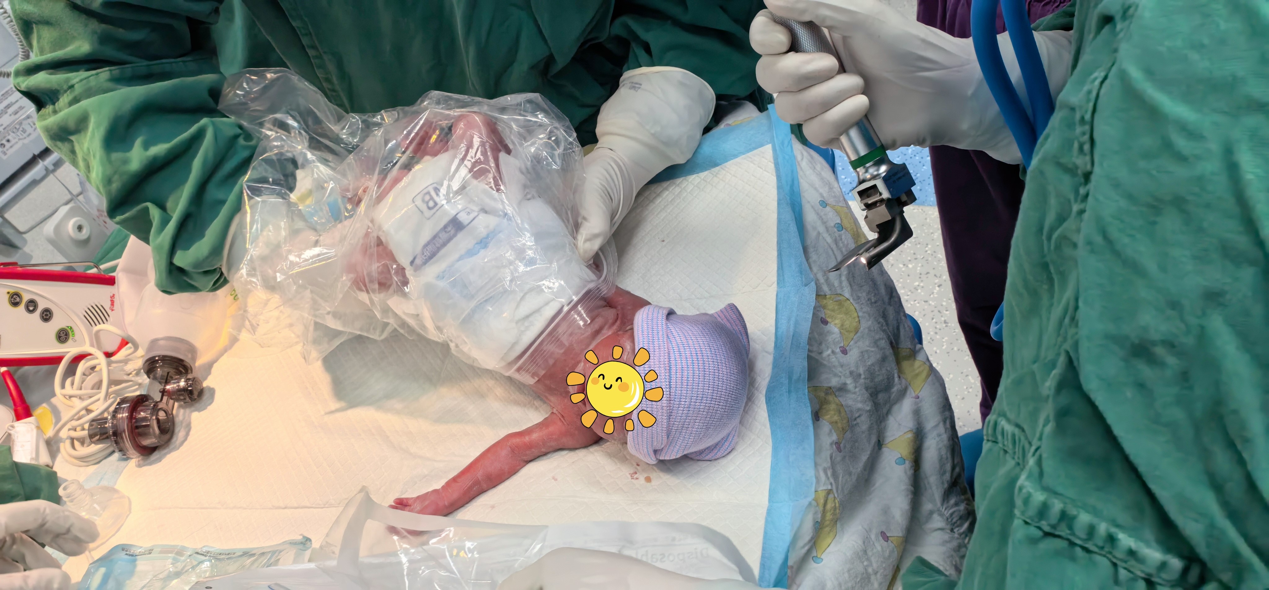 一声微弱但有力的啼哭响起!一个体重仅2.8斤的女宝宝顺利娩出。苏大附儿院新生儿科团队立刻接手,进行保暖、气管插管、呼吸支持等一系列抢救措施后,将宝宝安全转入苏大附儿院新生儿重症监护室(NICU)进行后续治疗。同时,新生儿母亲的手术也顺利完成,转入急诊ICU进行高级生命支持。