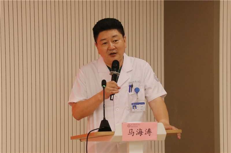 胸外科主任马海涛作为科主任代表发言。马主任从临床工作出发,强调了临床技能、科研创新、人文关怀是医者必须掌握的三大核心能力。他呼吁广大医务工作者应以生命为师,敬畏生命;从基础的临床操作做起,筑牢专业基础;以科学的质疑精神为指引,确保科研成果惠及患者;以高尚的医德为航标,践行“仁者无忧”的崇高理念。