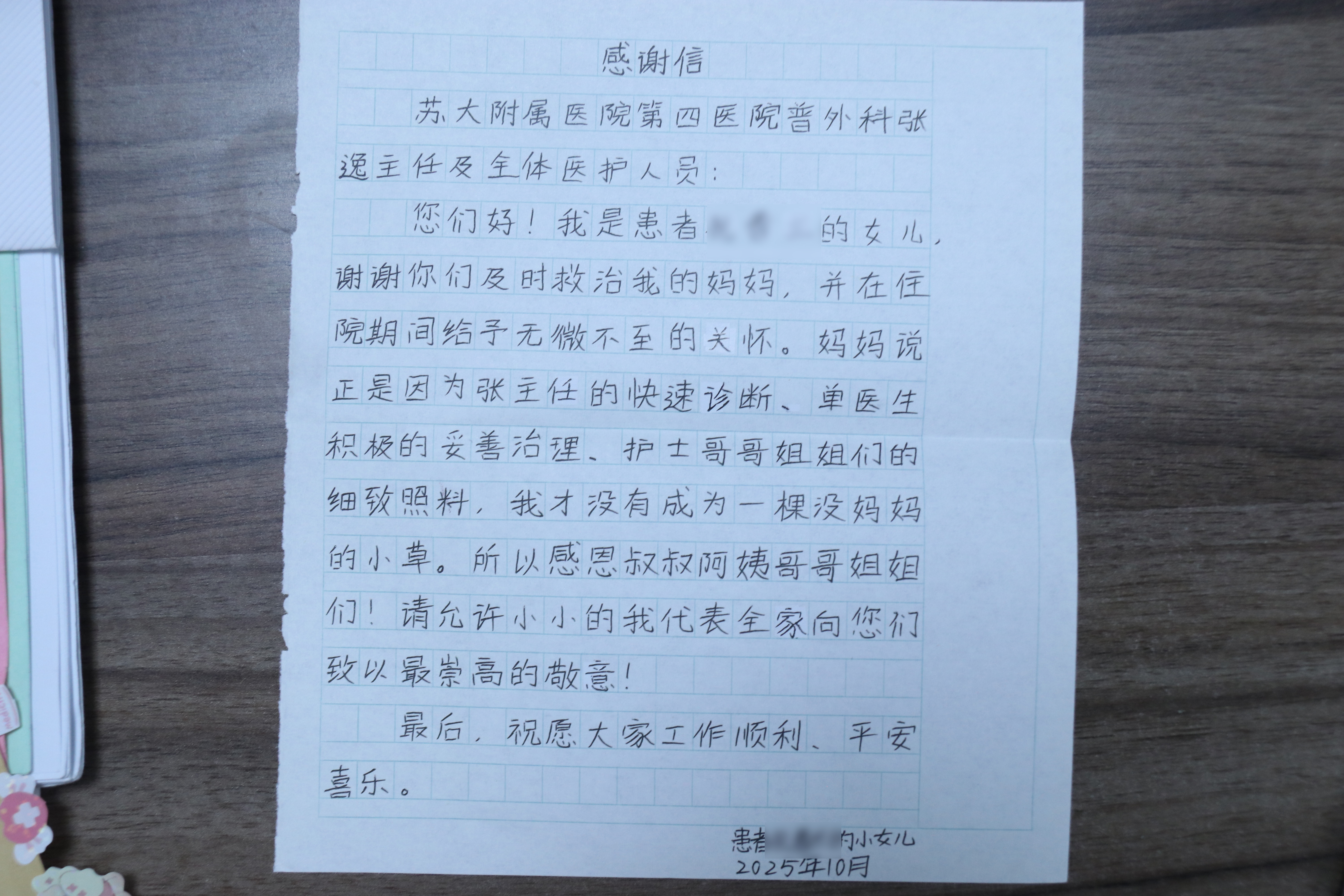 • 感谢信