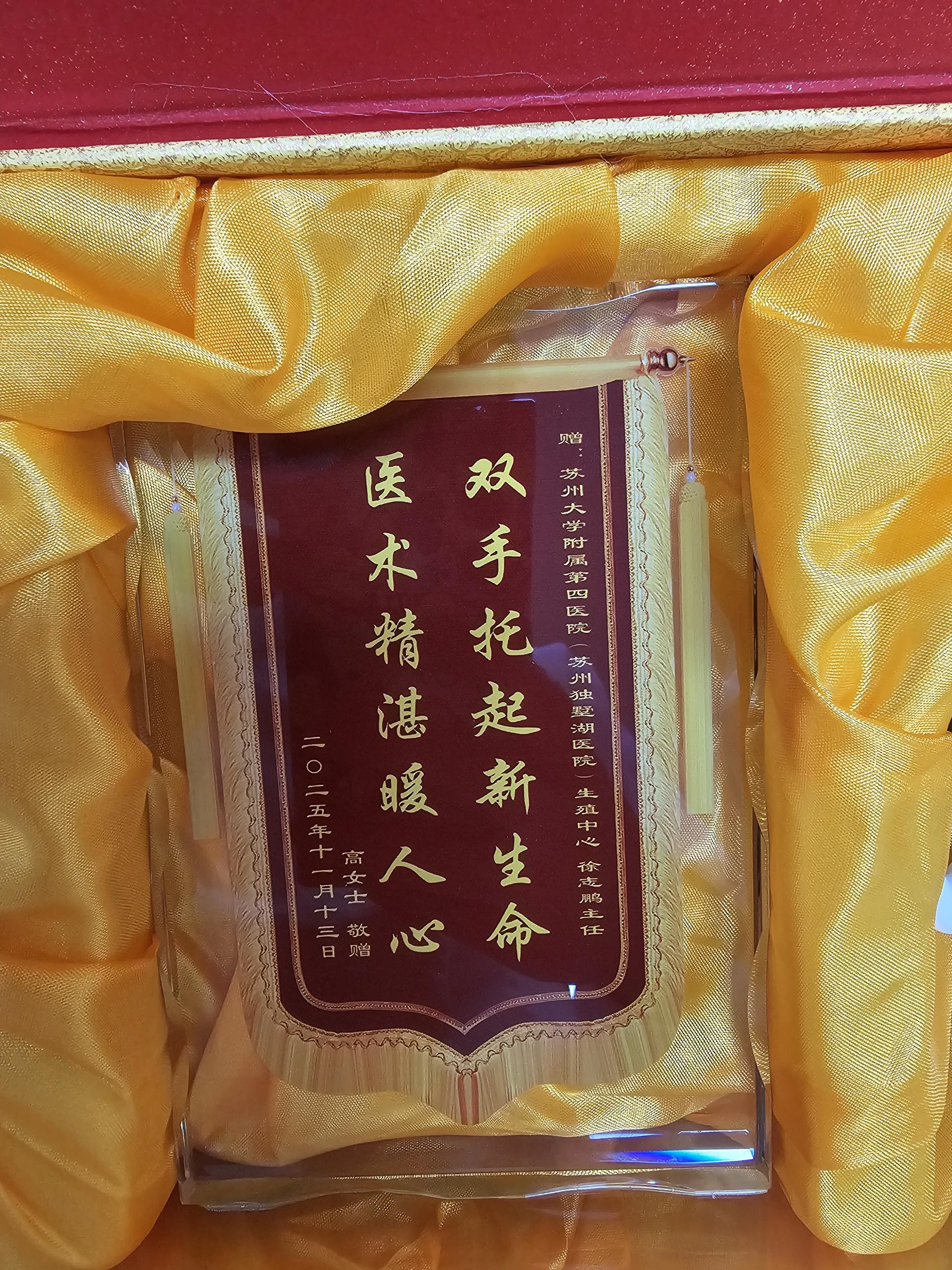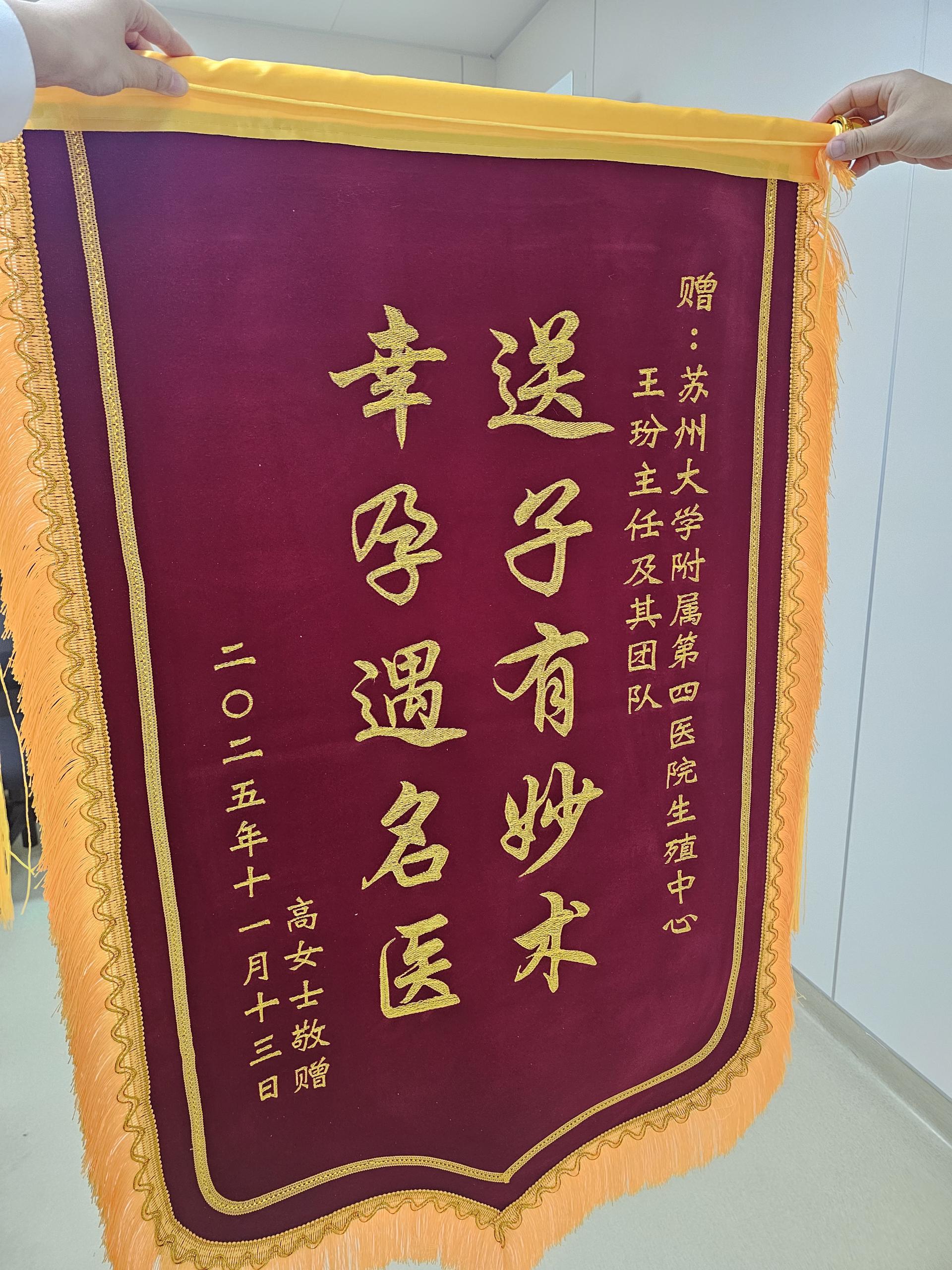 产妇高女士赠送锦旗感谢我院生殖医学中心王玢主任医师、徐志鹏副主任