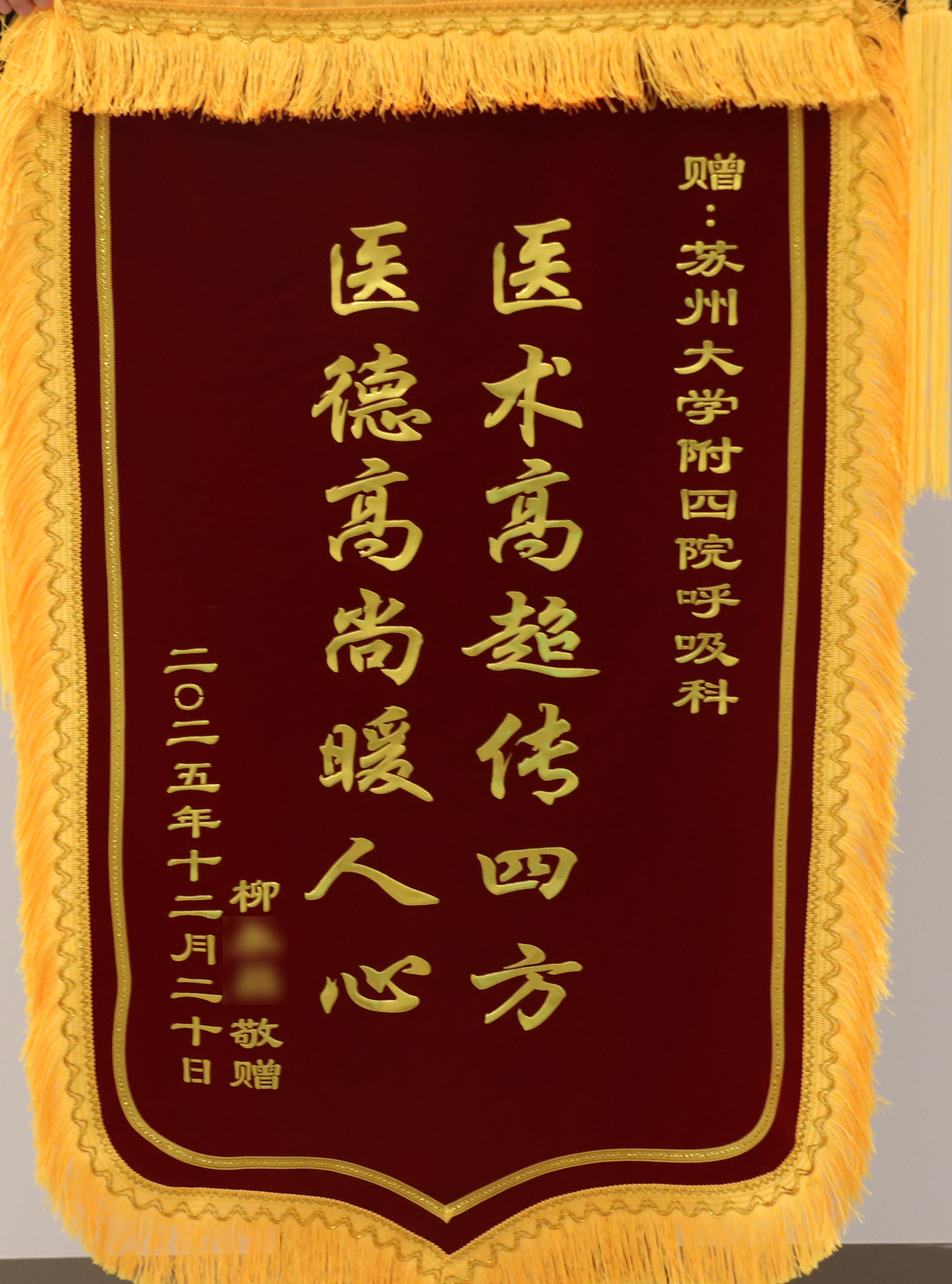 患者柳先生赠送锦旗感谢我院呼吸与危重症医学科蒋军红主任