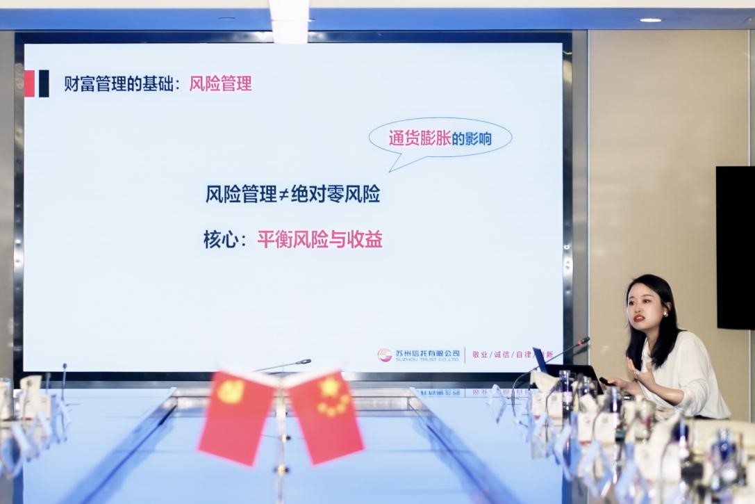 签约仪式后,苏州信托财富管理总部的吴启梦做专项讲座。讲座结合医务人员职业特点,围绕家庭资产配置、风险防控、理财规划等核心问题,以通俗易懂的语言讲解专业金融知识,为医师们提供个性化的财富管理建议。