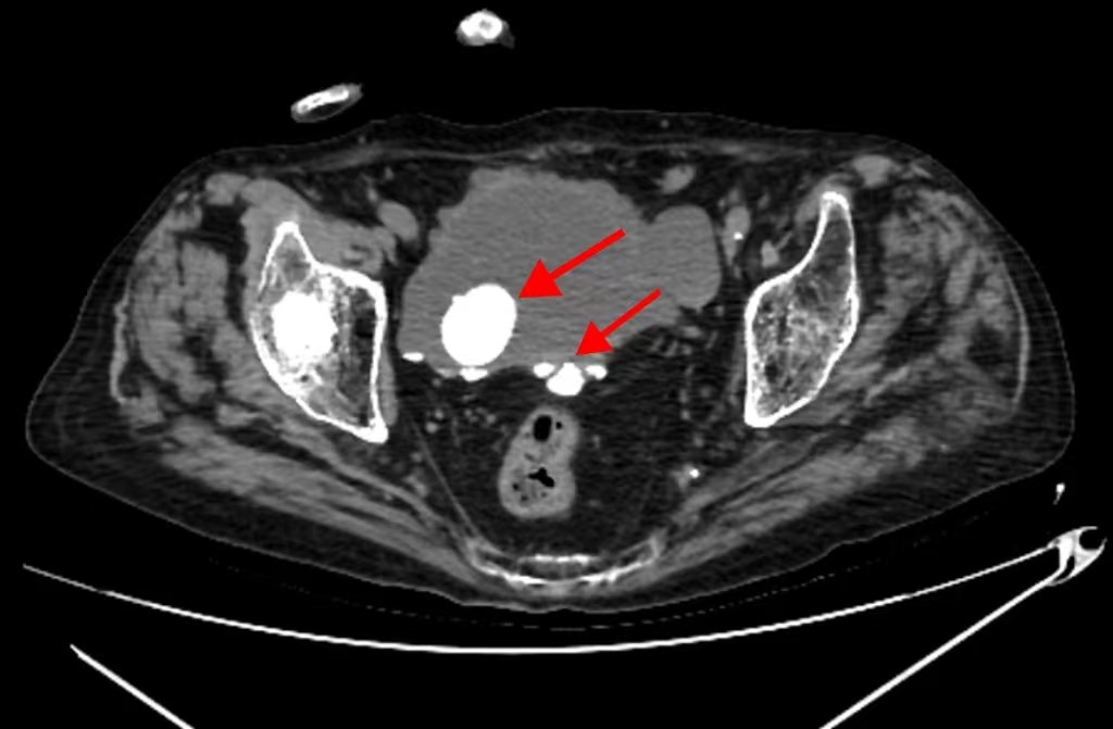 患者杨大爷因“排尿困难1周”入院,同时还伴有腰痛、血尿等症状。术前CT检查提示病情复杂:不仅存在右侧输尿管结石、膀胱多发结石与憩室、前列腺增生,还伴有右肺可疑癌变、冠心病。此外,患者有食管癌根治术手术史、腰椎及髋关节手术史等,叠加患者高龄,令治疗难度增大。