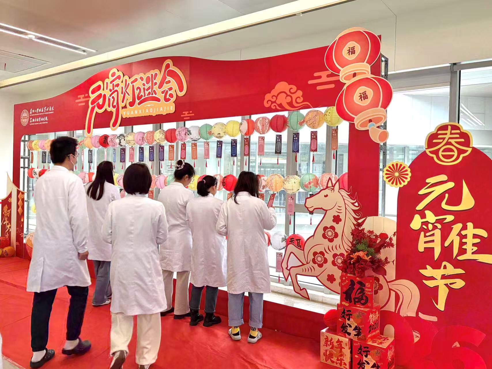 春灯映照福瑞,元宵共庆团圆。为弘扬中华优秀传统文化,丰富职工精神文化生活,增强职工的归属感与幸福感,3月3日,苏州大学附属第四医院工会在住院部一楼大厅举办“马到福来 情满元宵”迎元宵主题活动。全院职工欢聚一堂,共度温馨祥和的传统佳节。