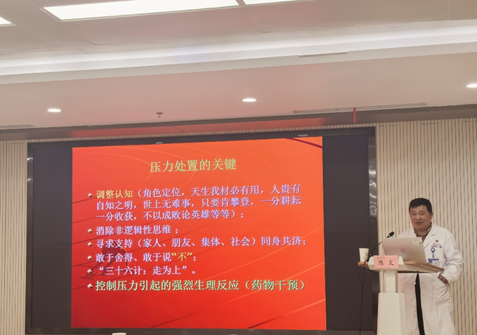 陈文主任以生动的案例和专业的视角,围绕健康的完整定义、女性生理心理特征、压力本质与应对策略等展开讲解。他剖析了长期压力对身心的影响,并现场分享了心理健康自评量表。他指出,“主动健康”是关键,鼓励大家培养积极心态、建立健康心理界限,必要时寻求专业帮助。