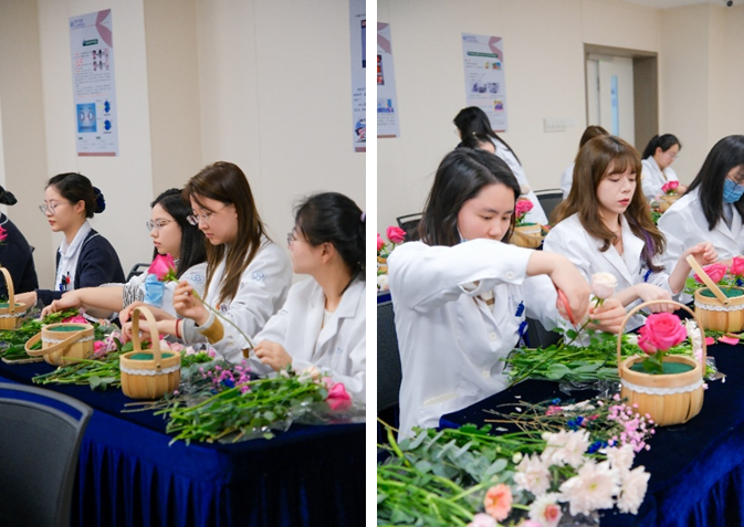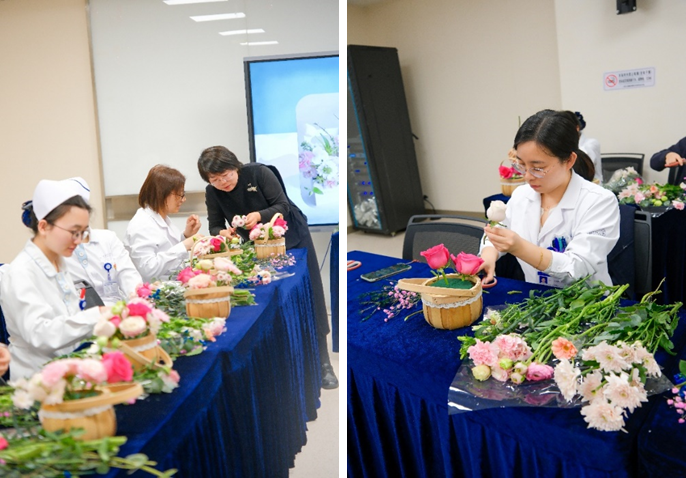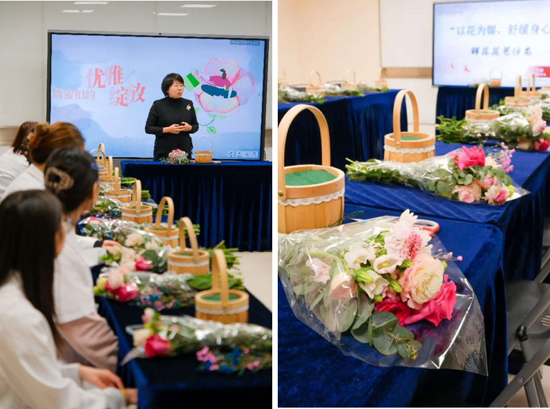工会女职工委员会王琳主任表示,医院女职工以专业素养和无私奉献撑起了医院发展的“半边天”,工会希望通过花艺活动让大家感受生活之美,舒缓工作疲惫。随后,专业花艺师宋老师围绕鲜花养护、色彩搭配、插花造型等进行了生动讲解。