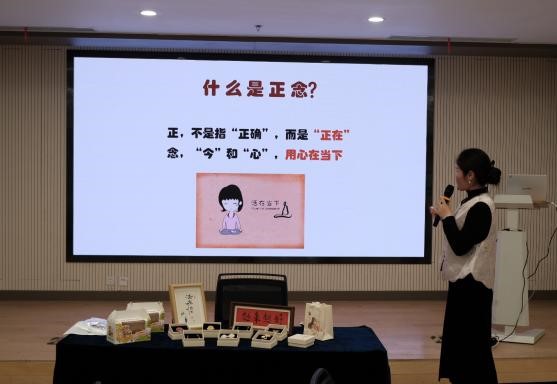 伴随轻柔音乐,大家调整呼吸、卸下疲惫,正念知识分享活动结合医护工作特点,讲解了正念在减压、改善睡眠等方面的应用,并传授实用技巧。随后,在指导老师带领下,女职工们体验了正念进食,专注感受番茄、柑橘、坚果等食材的色泽、香气与口感,重拾与食物的深度连接。