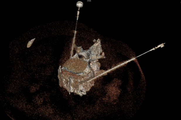 疼痛科团队术前认真讨论,并跟家属充分沟通手术风险,最后确定手术方案。在CT影像的帮助下,疼痛科医师们顺利为患者实施CT引导下腰交感神经射频消融+无水乙醇毁损术。手术后患者便感觉双下肢疼痛和麻木症状减轻,体温监测示其双侧足背皮温升高1.5℃-2.0℃。次日上午患者感觉双下肢疼痛和麻木症状显著减轻,夜间睡眠质量大幅改善,对治疗效果感到满意。