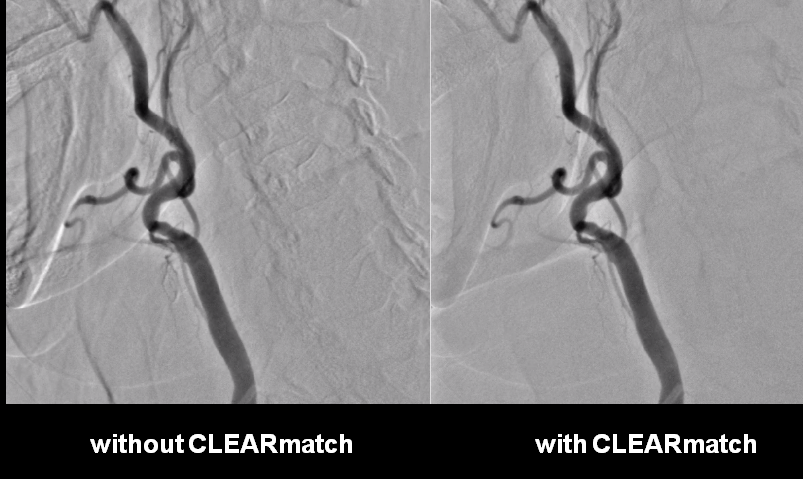 2.CLEARmatch矢量精配:实时像素位移修正技术,能够有效解决在DSA和路图功能中病人移动造成的图像问题。即使在病人出现明显移动机或旋转体位的情况下,依然可以获得锐利的图像,帮助医生更好的完成手术。
