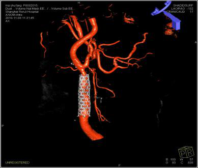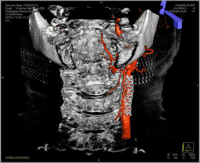 DynaCT双容积成像可以对不同容积影像如支架、弹簧圈、血管等同时显示,指导医生对支架释放、治疗预后进行评估。