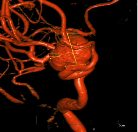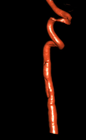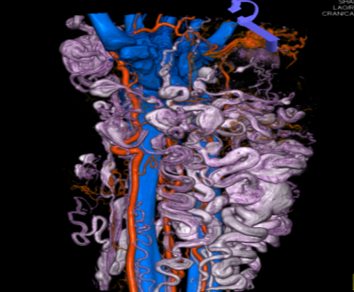 syngo Dyna4D展示特定时间点上的3D图像,对于脑血管畸形、血管瘤、动静脉瘘的结构、位置,并测量尺寸、分析供血动脉和引流静脉等。