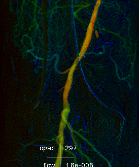 彩色血流编码iFlow基于DSA造影序列一键式生成彩色编码图像,直观且量化的显示血流动力学信息,如造影剂达峰时间等。通过血流达峰时间定量分析对术前术后疗效进行评估。